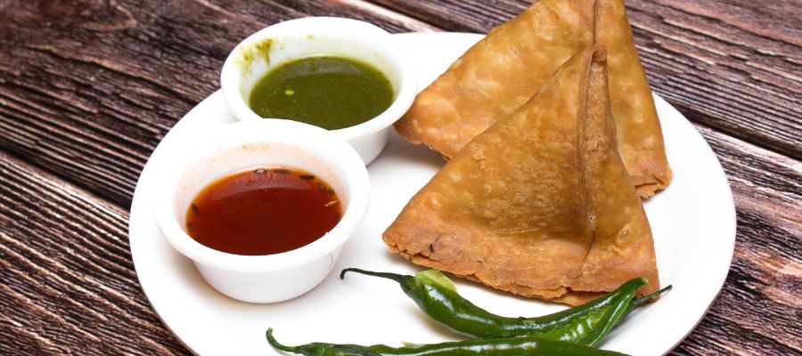 - Tangy-sweet imli chutney or spicy green chutney on the side